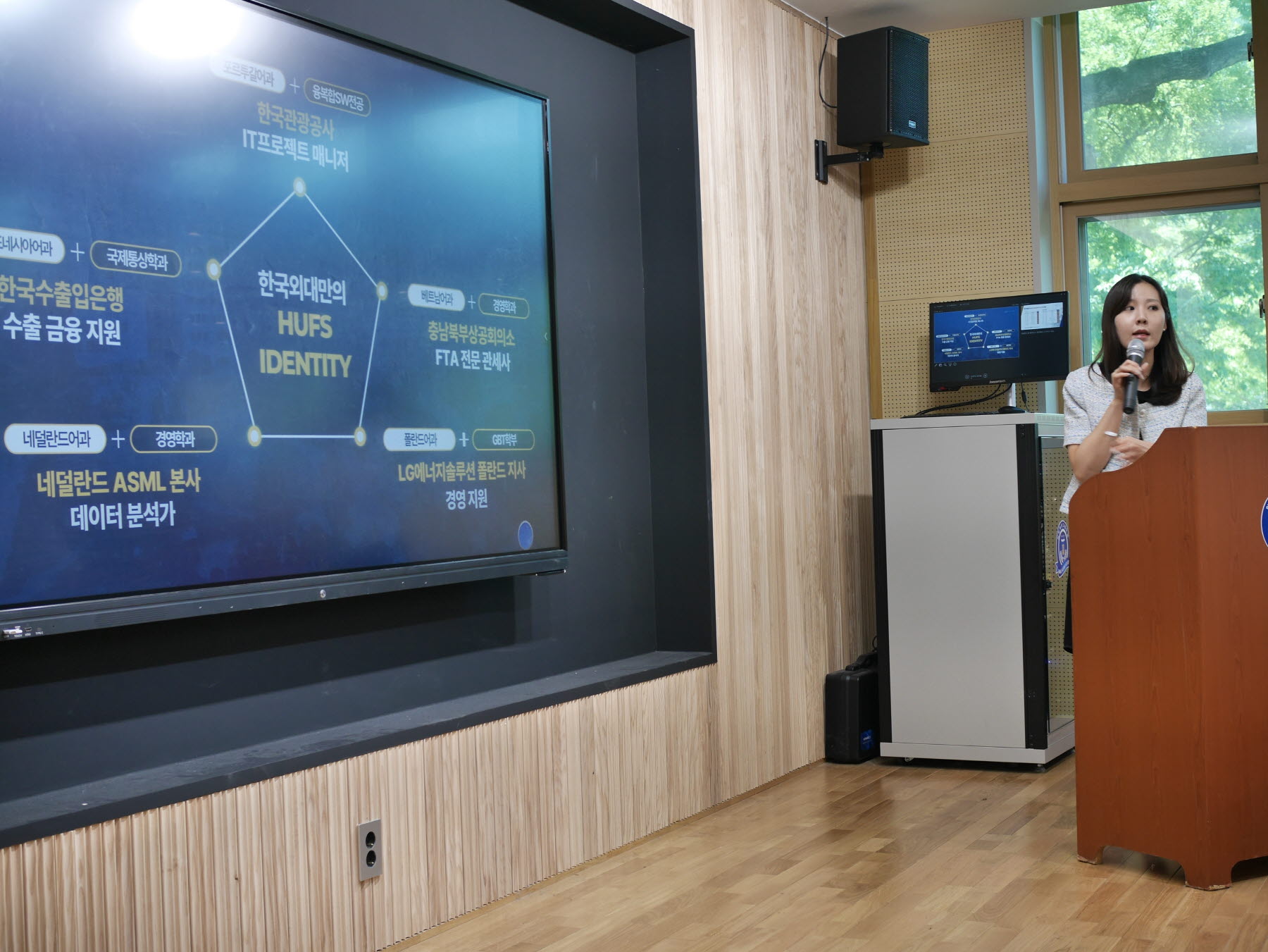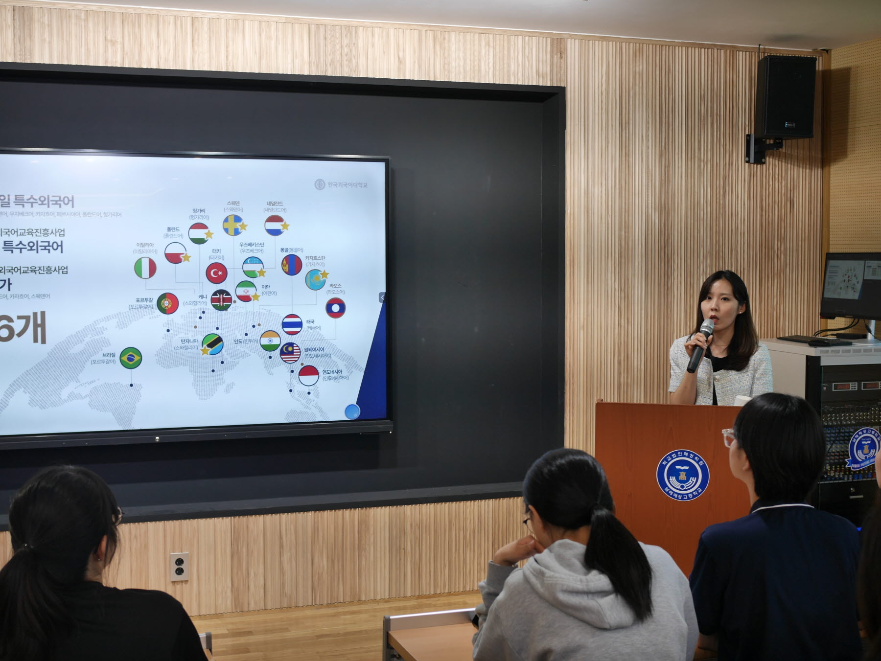 '자주적 탐구인, 국제적 한국인, 독창적 전문인'의 특성을 지닌 '미래지향적 글로벌 융복합 인재'를 양성하는 한국외국어대학교의 입학 설명회가 본교에서 진행되었습니다.