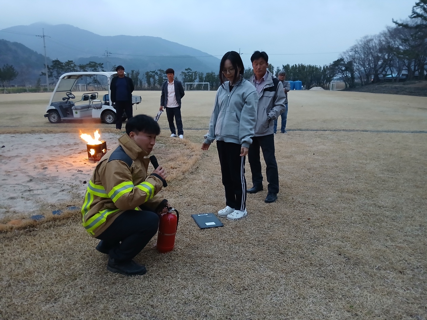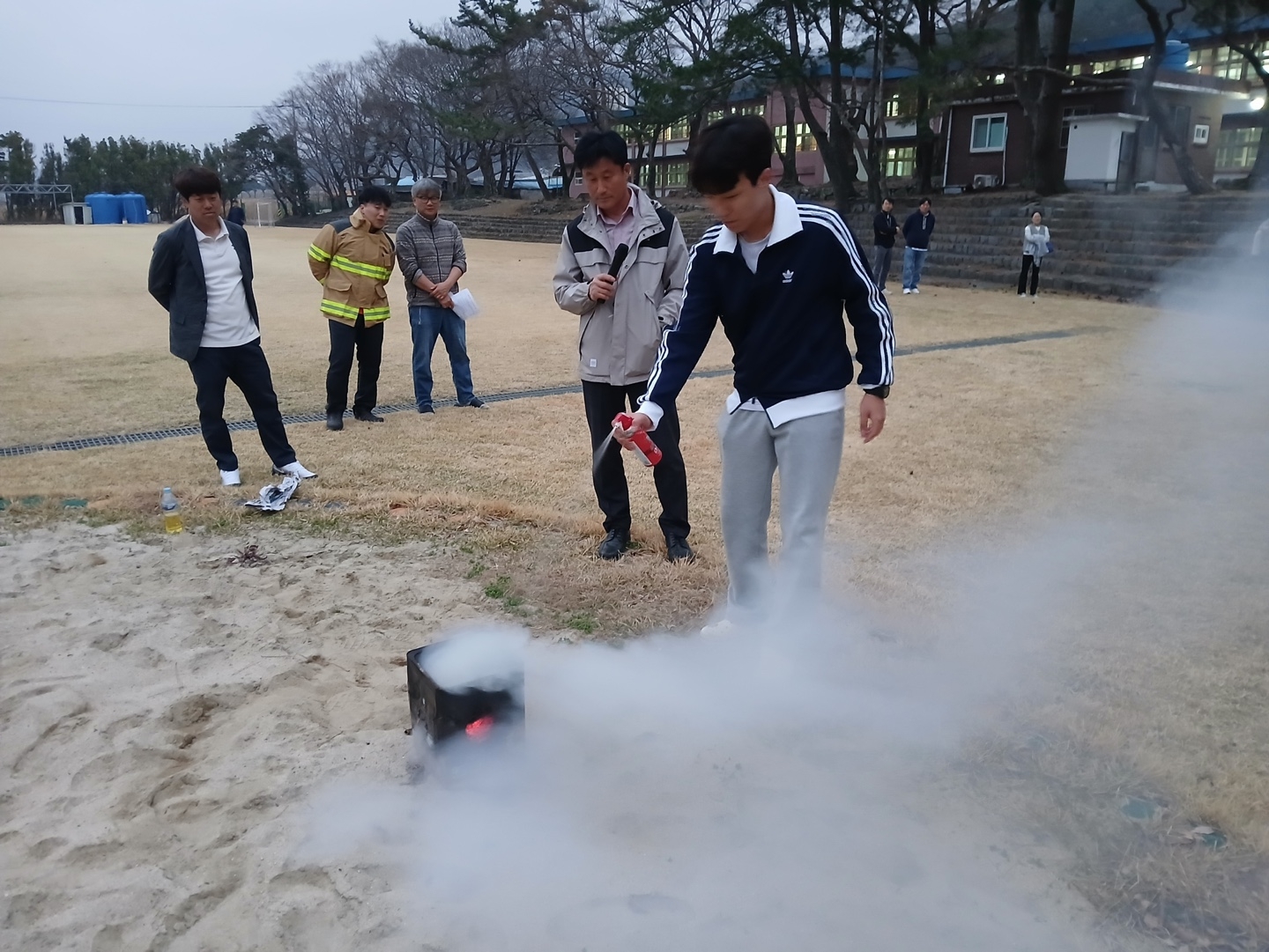 이번 훈련에서는 소화기의 위치 파악 및 사용법에 대해 배워보고, 학생들이 직접 불을 꺼보는 실습시간을 가졌습니다!