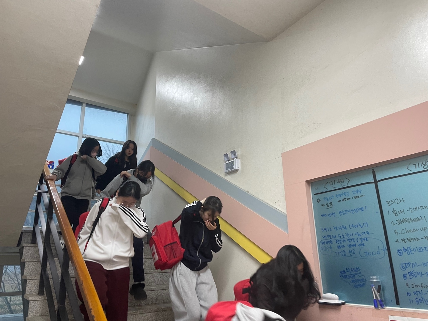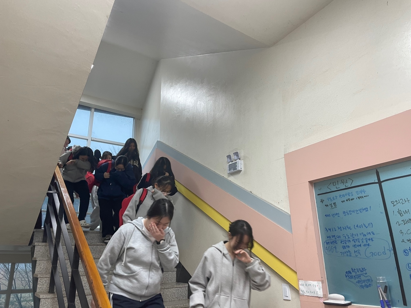 3월 26일 야간 면학 1교시를 이용하여 약 30분간 기숙사 화재 대피 훈련을 진행하였습니다.